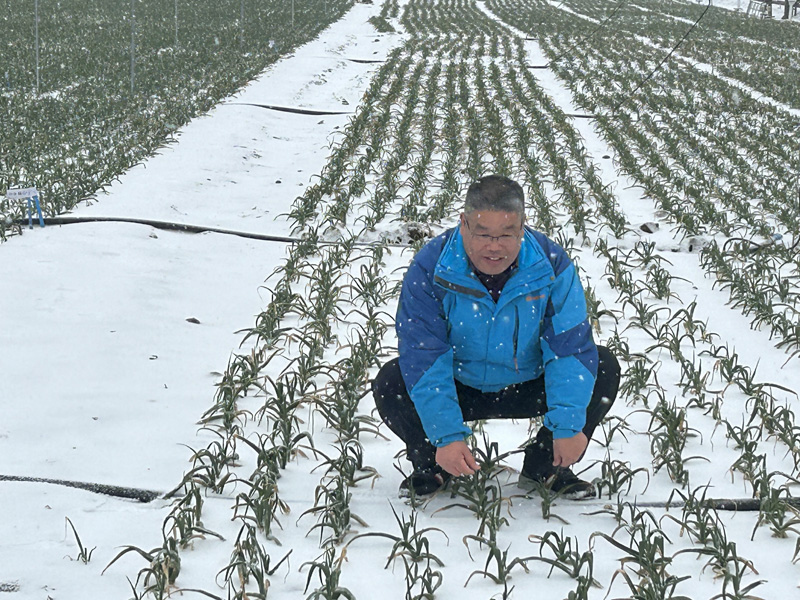 2月20日至21日,苏北蒜区先后出现冻雨和霰雪等严重的倒春寒天气,对刚刚进入返青期的地膜大蒜生长极为不利。省蔬菜体系葱蒜岗位专家史新敏研究员冒雨踏蒜,第一时间赴现场为蒜区蒜农把脉问诊献真策。