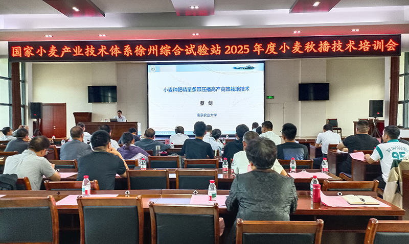 为进一步推动小麦生产农机与农艺相融合,持续提升小麦大面积单产水平,保障国家粮食安全,国家小麦产业体系徐州综合试验站于2025年9月25日在徐州农科院举办2025年度小麦秋播技术培训会暨秋播工作推进会,各示范县(市、区)农业农村局分管领导、种植业科负责人、种植大户代表等50余人参会。